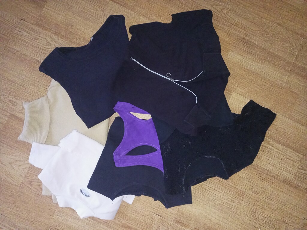 Продам вещи женские пакетом, размеры от 44 до 48: майки, топы, шорты спортивные, блузки, белые рубашки, кофты, свитера, водолазки, кардиганы, джинсы, юбки, брюки, спортивная одежда, трикотажные шапочки в комплекте с шарфами /новые/, колготки, лосины, перчатки, и мн.другое. 3 пакета, за 1 пакет 3000 руб. В связи с переездом. Есть брендовые вещи и обувь от 39,5-41,5 размеров, новые и б/у, по отдельной стоимости.