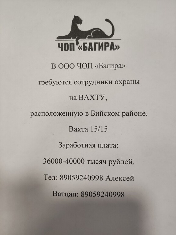 Должность: Сотрудник охраны