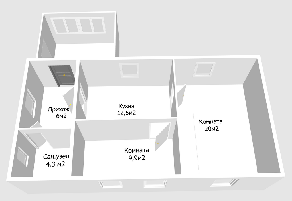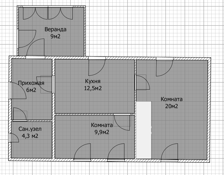 2 комнаты, кухня, прихожая, коридор, веранда (можно утеплить).